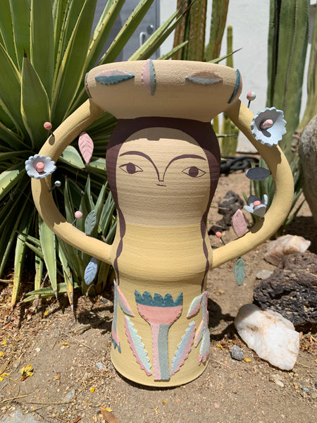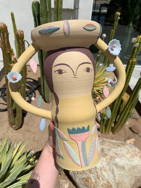 Heidi is a ceramic artist based in Vashon Island, WA, originally from Seattle. A 2002 graduate of the San Francisco Art Institute, she has been creating ceramics since 2012. Using the Nerikomi technique, she hand-builds pots, sculptures, and vases, inlaying patterns and narratives with colored clays. She also creates "Protectors," sculpted figures made from wheel-thrown clay and embellished with individually cut clay elements.