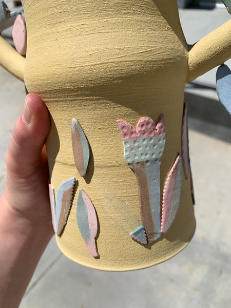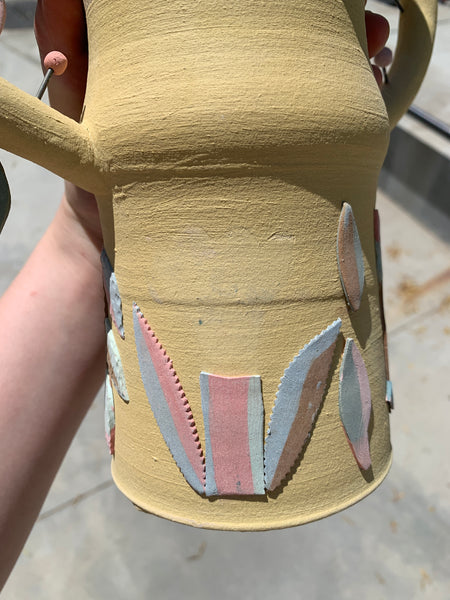 Stoneware ceramics w/color clay slip and handbuilt applique