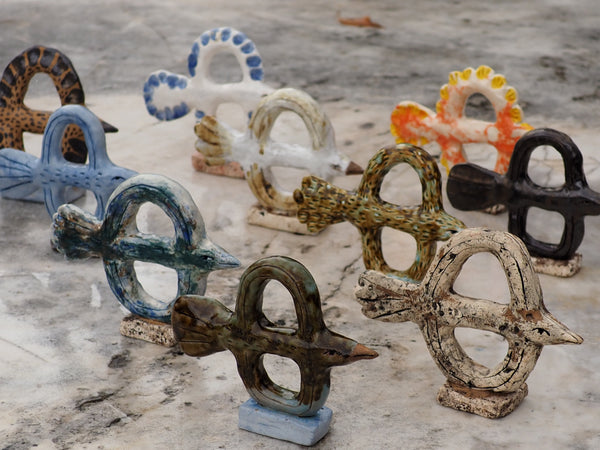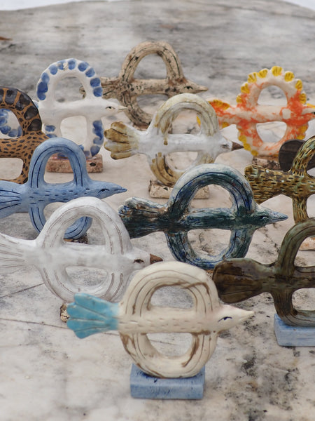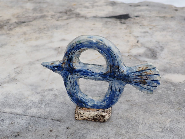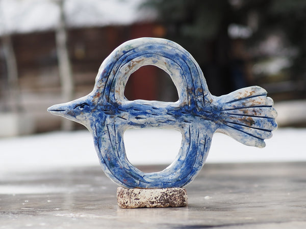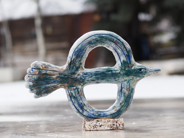 Made using a custom two-part press mold and then altered by hand after. Lili made this as part of a series of birds during her residency at Anderson Ranch in Colorado.