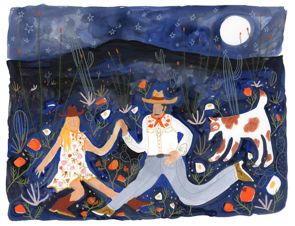 Melissa Lakey is a contemporary visual artist and illustrator based in Yucca Valley, California. Her colorful figurative and landscape-based works are inspired by the desert where she lives as well as a childhood of watching westerns and dreaming of becoming a cowboy.