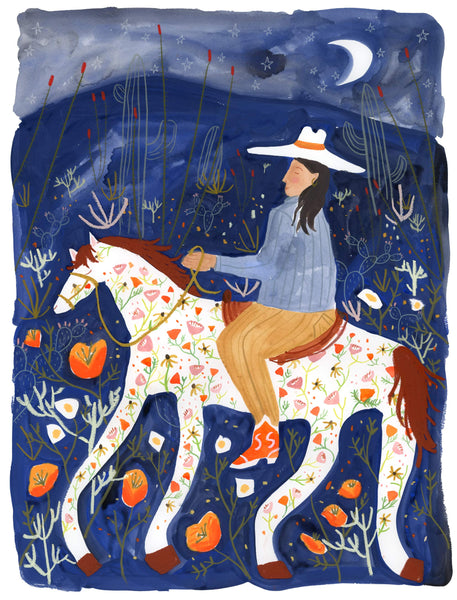 Melissa Lakey is a contemporary visual artist and illustrator based in Yucca Valley, California. Her colorful figurative and landscape-based works are inspired by the desert where she lives as well as a childhood of watching westerns and dreaming of becoming a cowboy.
