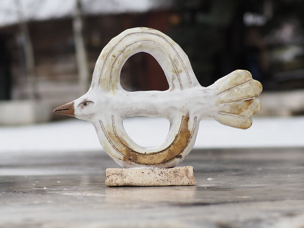 Made using a custom two-part press mold and then altered by hand after. Lili made this as part of a series of birds during her residency at Anderson Ranch in Colorado.