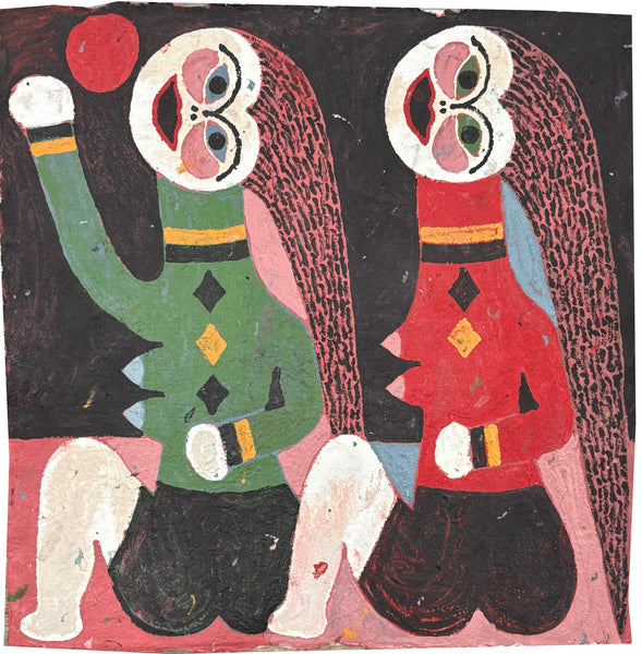 Nacho Eterno (1992) is a self-taught Spanish painter and ceramic artist based in the Girona countryside. His work is based on simple compositions with a raw color palette, creating an innocent but mysterious atmosphere. Folk art and ancient art cultures are core in his imaginary.