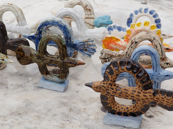 Made using a custom two-part press mold and then altered by hand after. Lili made this as part of a series of birds during her residency at Anderson Ranch in Colorado.